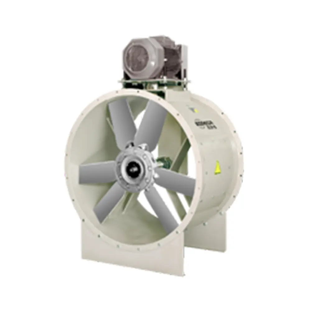 Ventiladores helicoidales tubulares equipados con hélices de aluminio de 6 o 9 álabes con diversos ángulos de inclinación.